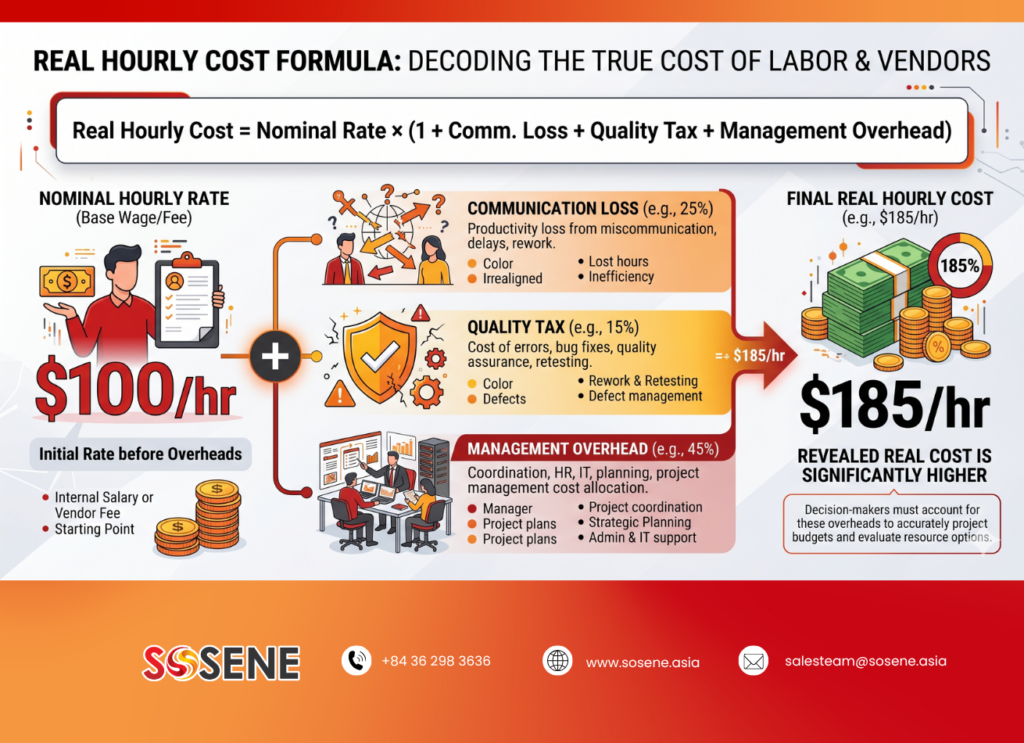 Behind the headline hourly rate lies the Real Hourly Cost. For buyers in Singapore or San Francisco, a senior developer in Vietnam ($35/hr) or India ($29/hr) looks attractive . However, without a process-led infrastructure, you pay a “Quality Tax” .
